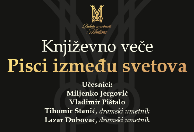 Pisci između svetova – književni susret Miljenka Jergovića i Vladimira Pištala u Palati umetnosti Madlena U utorak, 7. aprila 2026. godine, sa početkom u 19 časova, u Palati umetnosti Madlena biće održano književno veče pod nazivom „Pisci između svetova“. Predviđeni razgovor dvojice istaknutih autora – Miljenka Jergovića i Vladimira Pištala – obećava zanimljivo i konstruktivno